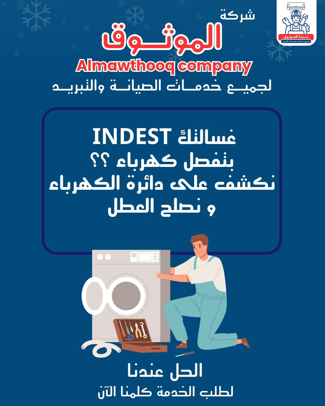 خبرة متخصصة في صيانة مختلف موديلات غسالات إندست سواء الأوتوماتيك أو الفوق أوتوماتيك.