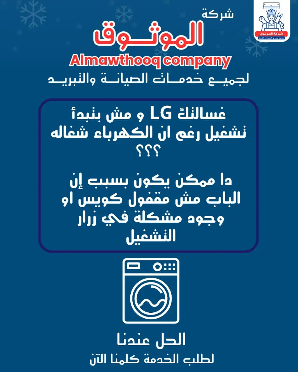 مشاكل التشغيل في موديلات غسالات إلجي بالكويت