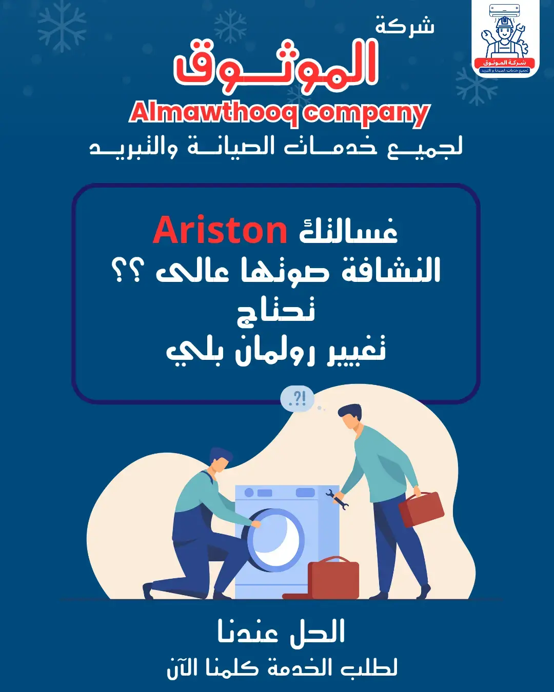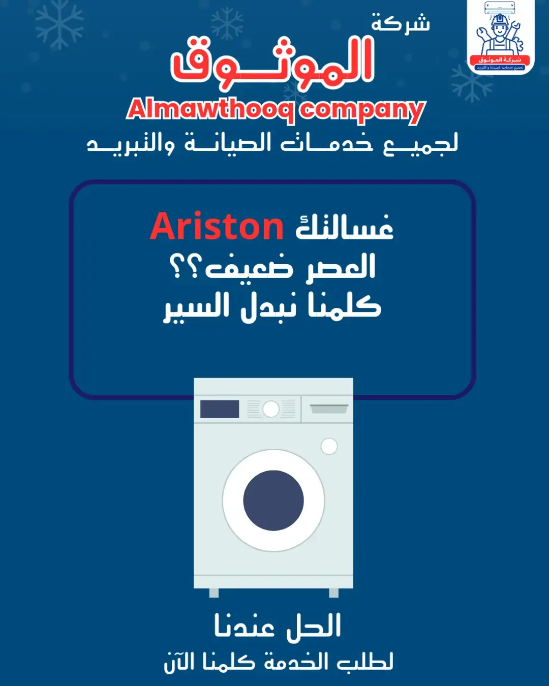 فنيون مختصون في جميع أنواع الغسالات (أوتوماتيك، نصف أوتوماتيك، حديثة).