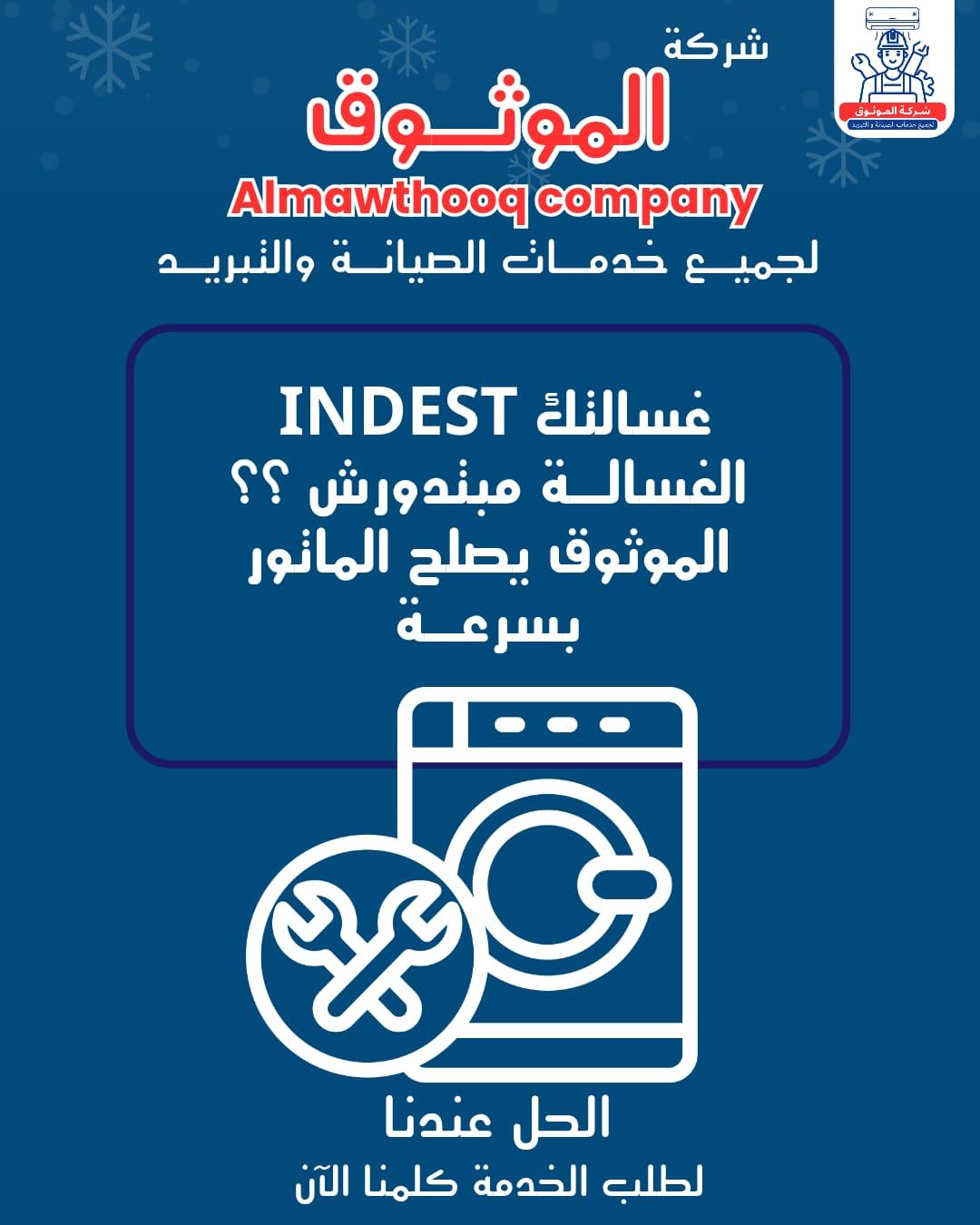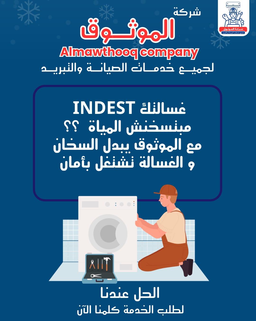 خبرة متخصصة في صيانة مختلف موديلات غسالات إندست سواء الأوتوماتيك أو الفوق أوتوماتيك.