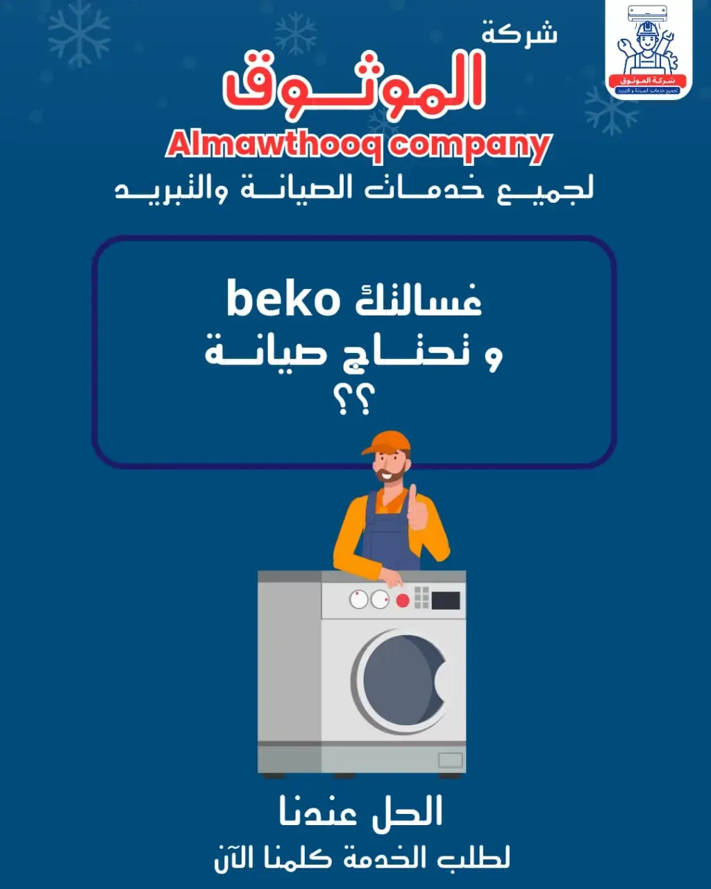 وجود فنيين معتمدين مدربين على التعامل مع مختلف موديلات غسالات بيكو.