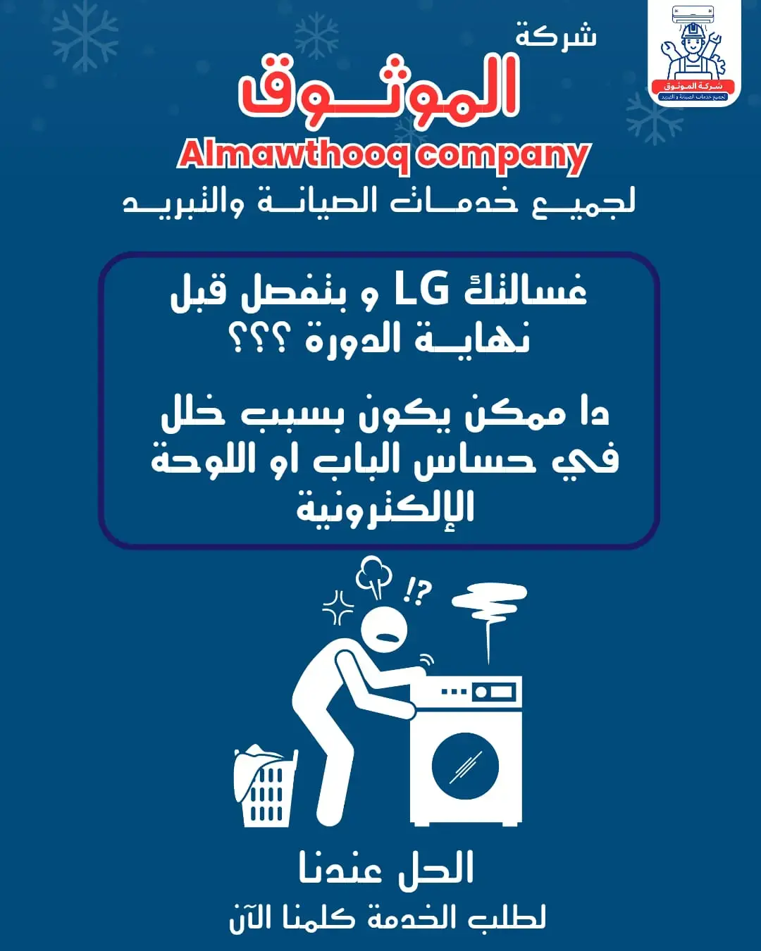 التعامل مع الأعطال الطارئة: مثل توقف الغسالة بشكل مفاجئ أو تسرب المياه.
